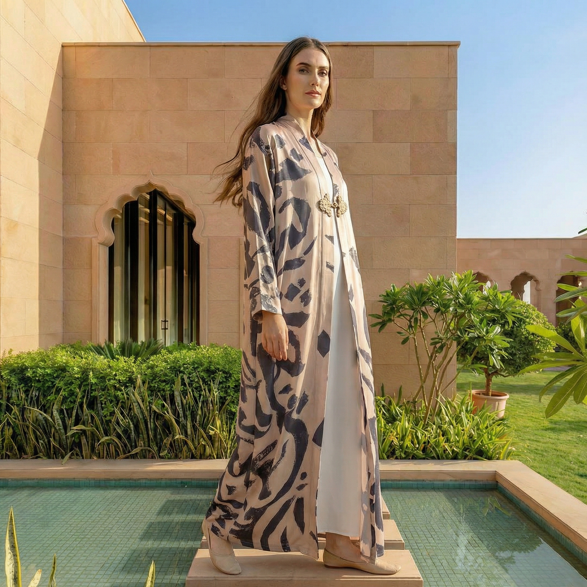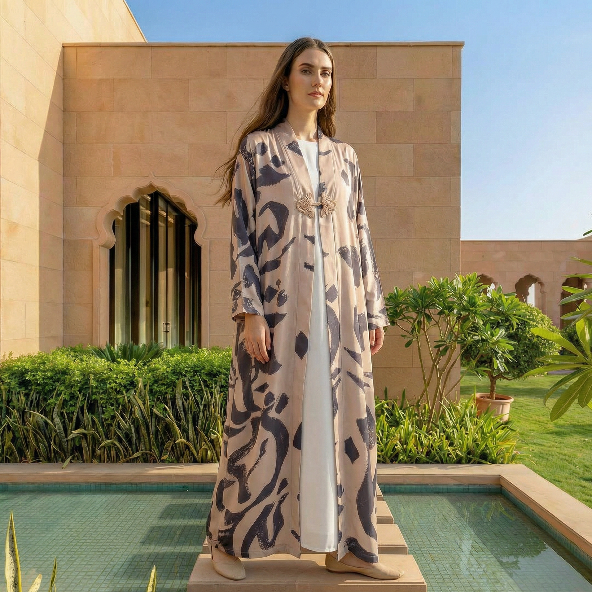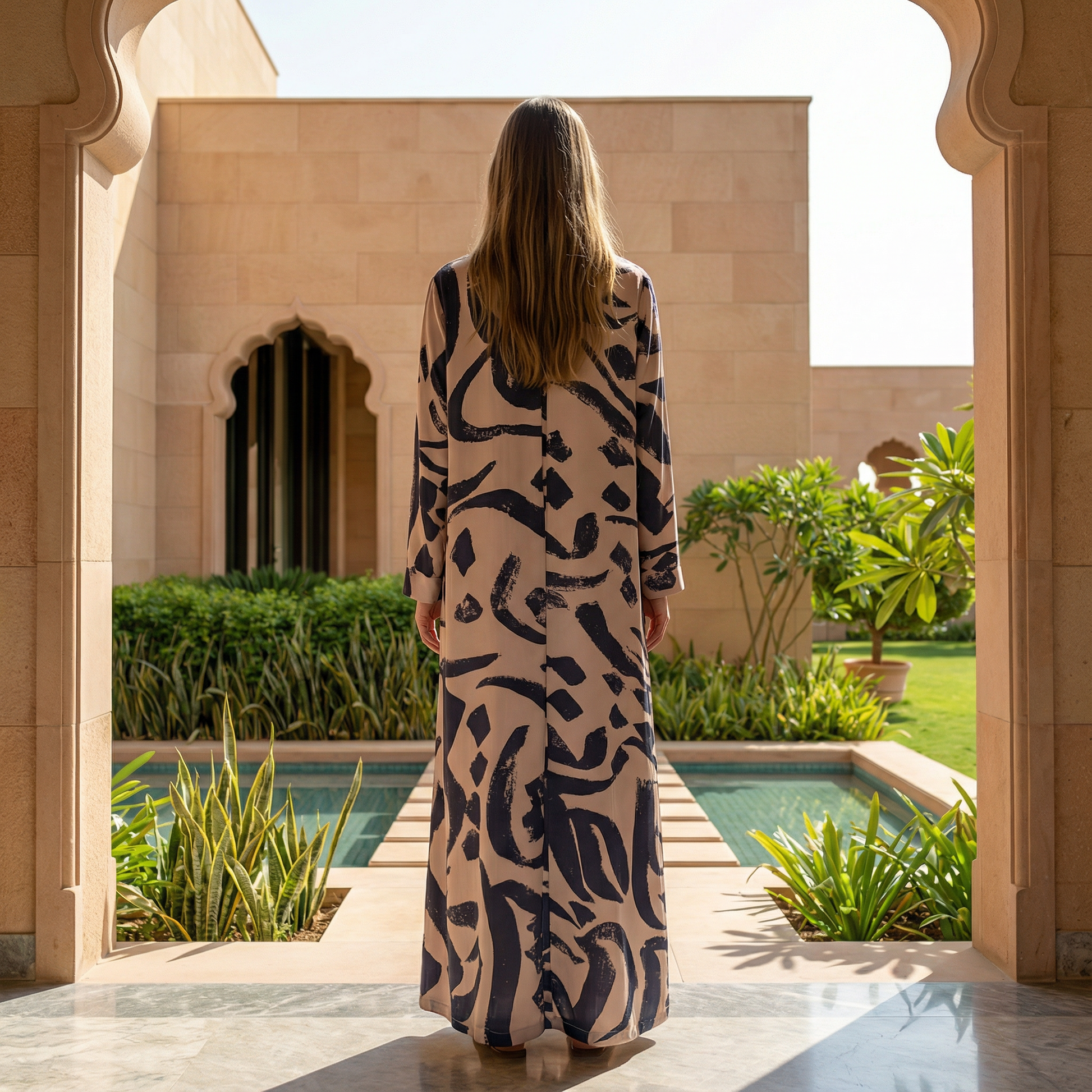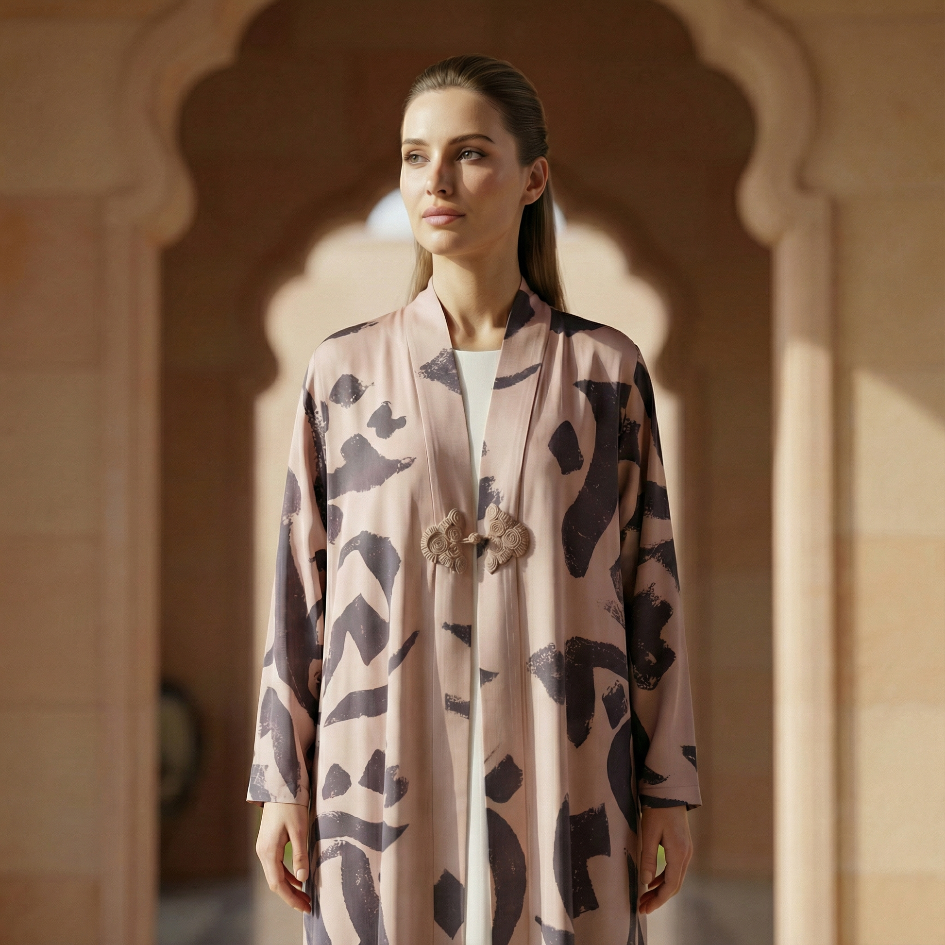 Artistic Arabic lettering details add a contemporary cultural dimension, expressing identity through subtle, refined design. Its practical yet elegant cut makes it ideal for elevated everyday wear as well as refined occasions that call for understated luxury.