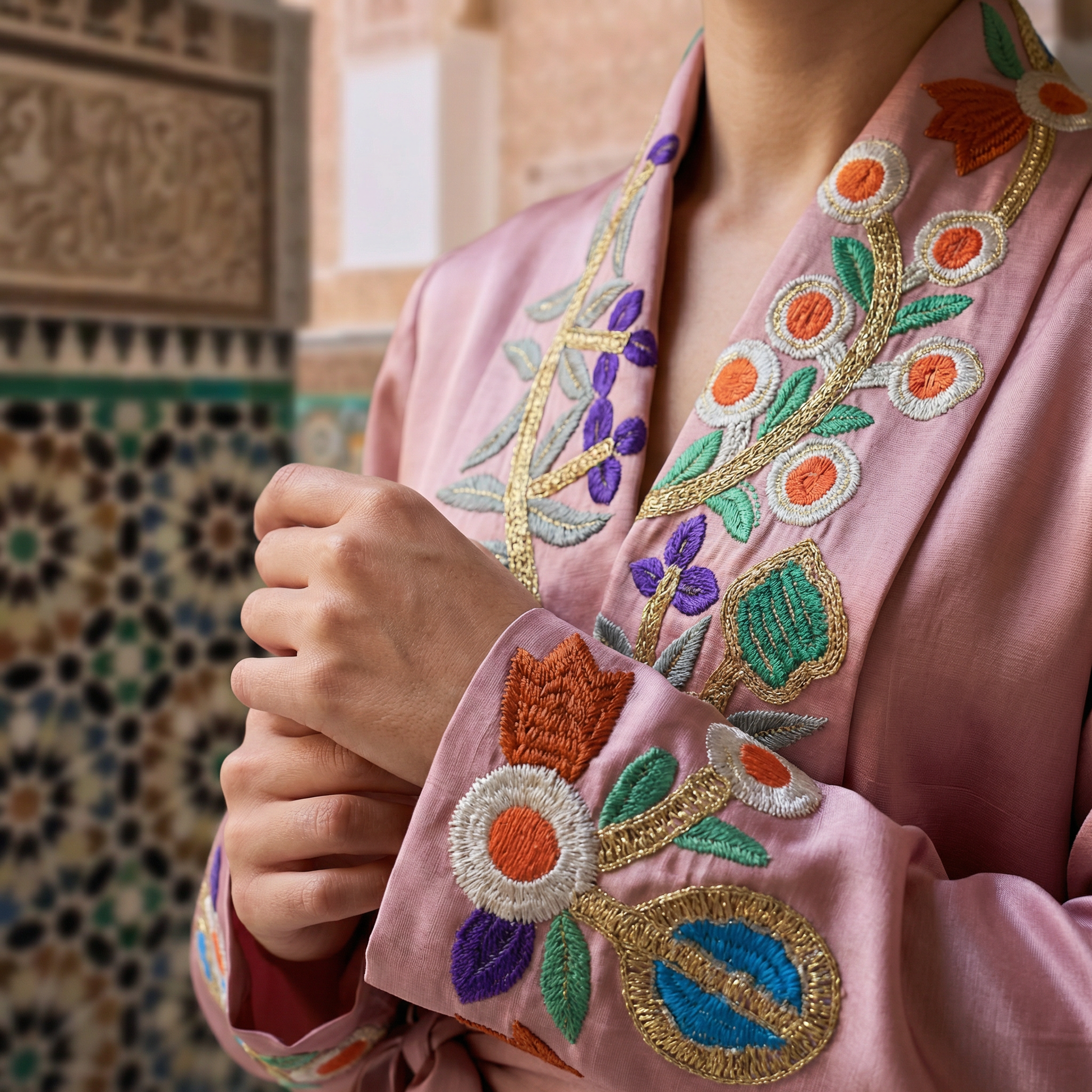 An exclusive Mizyan piece that embodies fabric luxury, delicate detailing, and the timeless elegance of Moroccan artisanal artistry.